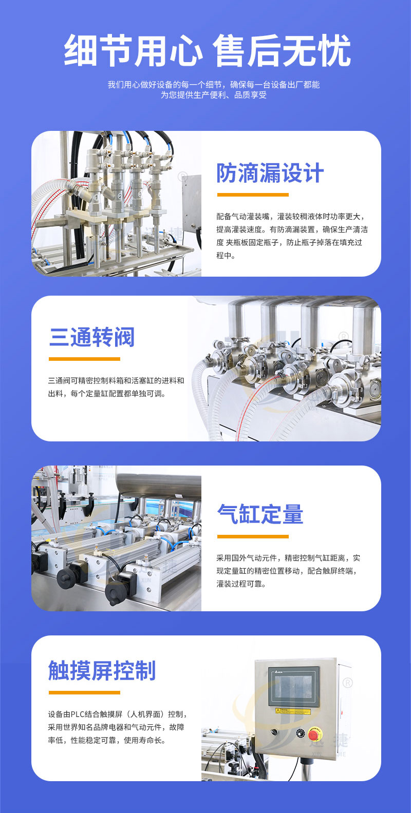 全自動(dòng)膏液灌裝機(jī)適用于食品、飲料、化妝品、日化和制藥行業(yè)。灌裝頭設(shè)有特殊防漏裝置,灌裝無(wú)拉絲,滴漏現(xiàn)象。